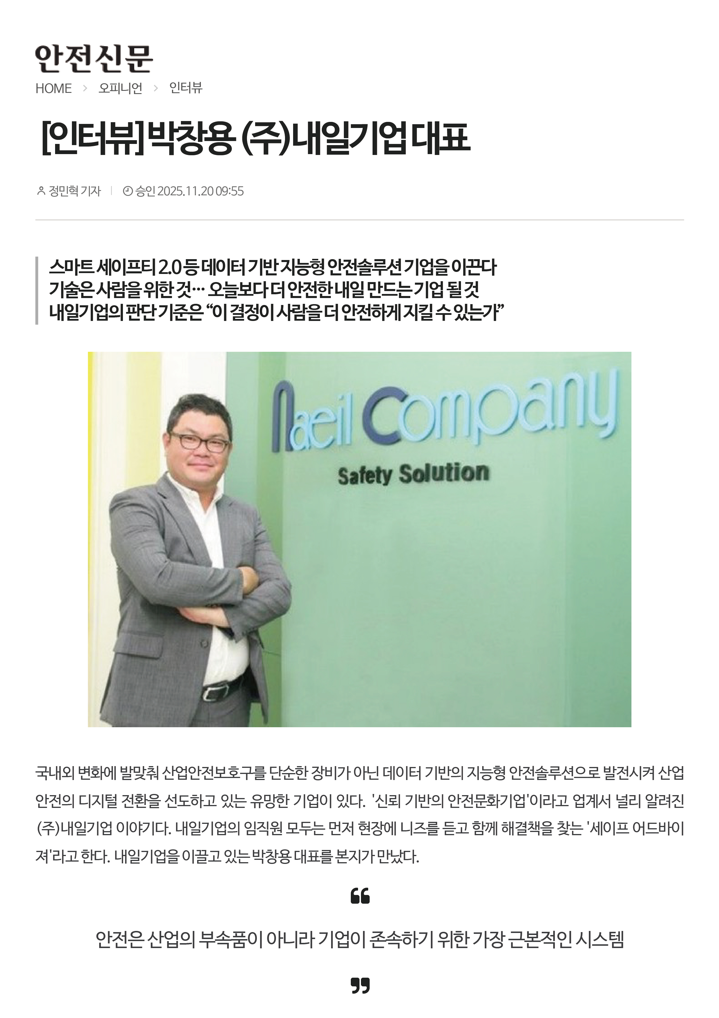 [안전신문] [인터뷰] 박창용 (주)내일기업 대표